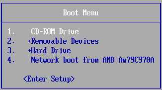 Si pulsamos entonces [ESC] veremos un menú desde donde se puede seleccionar el dispositivo de arranque. Utilizando las flechas del teclado seleccionamos CDROM y pulsamos la tecla [Intro]. Si trabajamos de esta forma, sin hacer cambios en la BIOS, tendremos que repetir este proceso cada vez que queramos arrancar desde el CDROM.