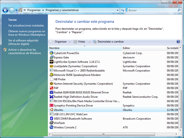 Desinstalar Ubuntu en Windows Vista o Windows 7