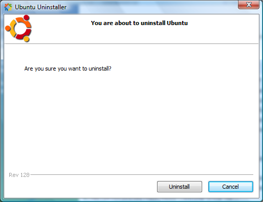 4. Aparece entonces la ventana del desinstalador de Ubuntu. Haga clic en Uninstall