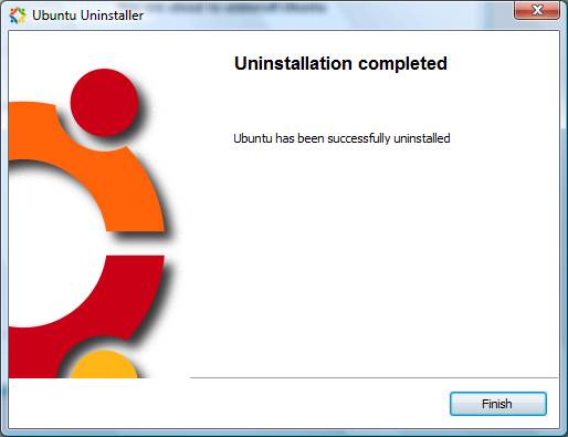 5. Cuando la desinstalación concluya haga clic en Finish para terminar. Ubuntu habrá desaparecido del sistema y el administrador de arranque ya no lo mostrará.