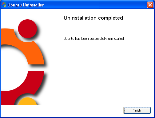 Haga clic en el botón Unistall. Si todo va bien verá la ventana que le informa de que Unbutu ha sido desinstalado completamente. Pulse Finish para terminar.