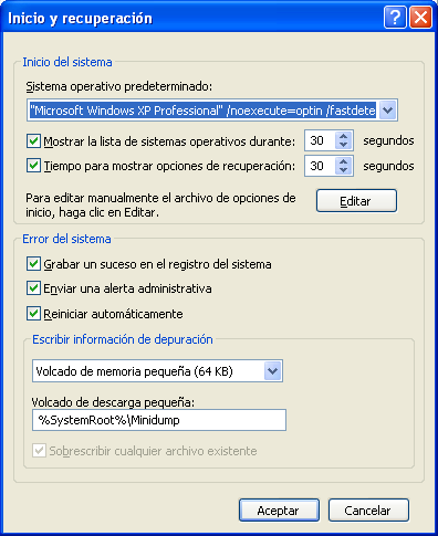 Bajo el epígrafe Inicio y recuperación haga clic en el botón Configuración.