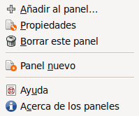 Para crear un nuevo panel pulse con el botón derecho del ratón sobre una zona vacía en cualquiera de los paneles existentes. En el menú emergente seleccione Panel nuevo. Esto creará un nuevo panel en el extremo derecho de la pantalla. Si desea situarlo en cualquier otro lugar pulse con el botón izquierdo del ratón en cualquier zona del panel y arrastre el puntero a uno de los extremos de la pantalla.