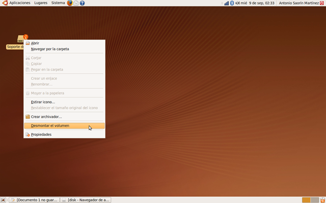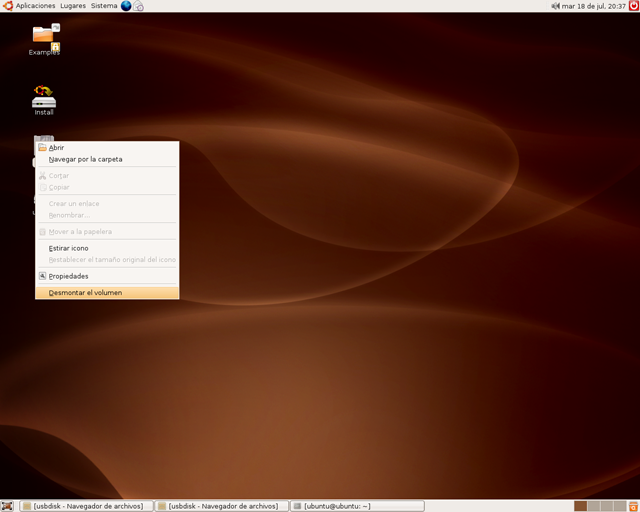 Llaveros de memoria USB. Conectamos el dispositivo en el puerto USB, éste será reconocido por el sistema, se creará un icono en el escritorio y se abrirá una ventana del administrador de archivos mostrándonos sus contenidos. El icono del escritorio tendrá como rótulo Soporte de x GiB, donde x es la capacidad del llavero, por ejemplo Soporte de 2,0 GiB.