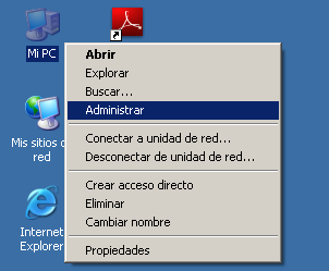 1. Haga clic con el botón derecho del ratón sobre el icono Mi PC en el escritorio y en el menú emergente seleccione Administrar.