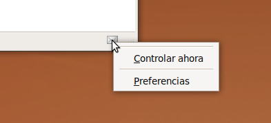 Pulsando sobre este icono con el botón derecho del ratón, obtenemos un menú emergente que nos permite Controlar ahora, es decir, que compruebe si existen mensajes nuevos en nuestra cuenta, en caso de que ya estuviese configurada, evidentemente, o bien, establecer las Preferencias, esto es, configurar la cuenta de correo, entre otras cosas.