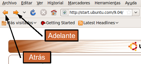 1. Para avanzar o retroceder a la página inmediatamente anterior o posterior a la actual haga clic en los botones marcados con las flechas Adelante y Atrás.