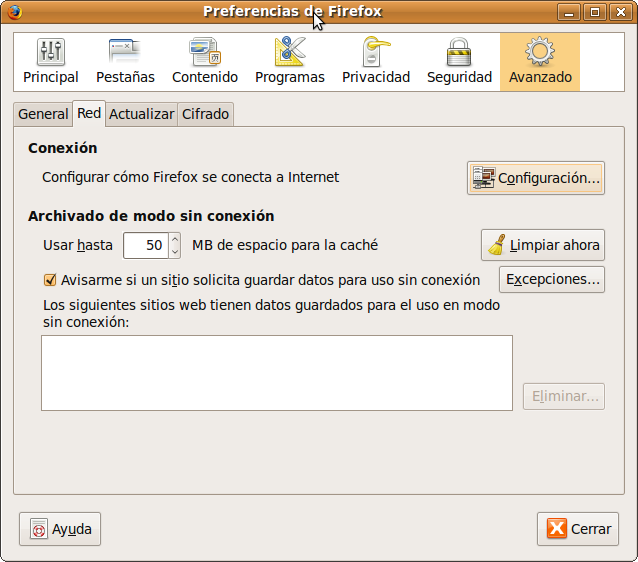 4. Para borrar los contenidos almacenados en la caché haga clic en Limpiar ahora.