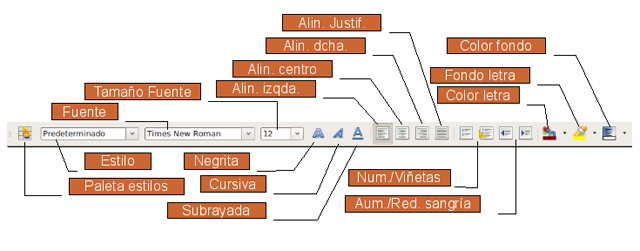 Estilo. Estilo en uso en el fragmento de texto donde se encuentra el cursor. De los estilos nos ocuparemos más adelante.