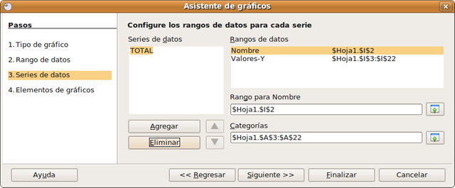 Ahora es donde elegimos qué series de datos necesitamos representar y cuáles no. En nuestro caso, eliminamos todas las columnas situadas bajo el campo Series de datos y dejamos sólo TOTAL.