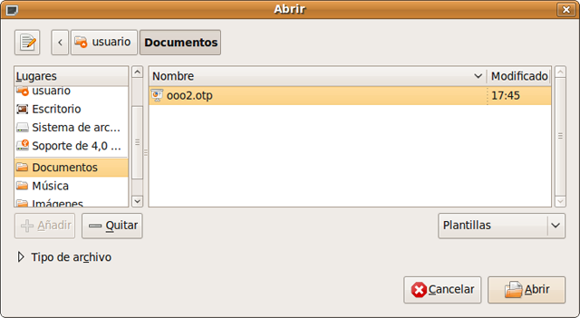 archivos de plantilla de Impress son reconocibles por su extensión, *.otp.