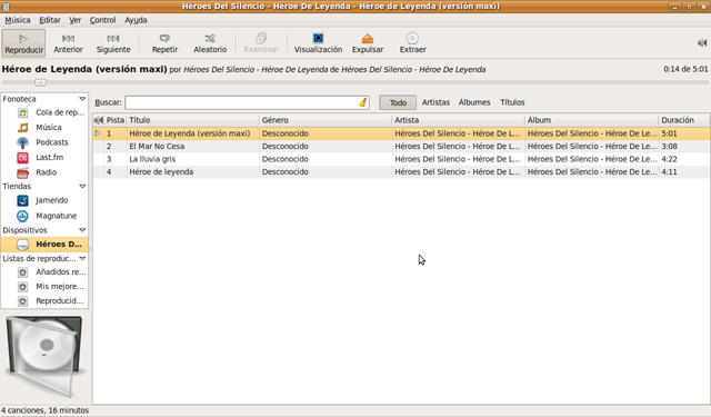 Si lo que desea ahora es escuchar el CD de audio haga doble clic sobre su título, que encontrará en la columna de la izquierda bajo Dispositivos.