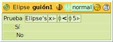 Desde la categoría básico del Visor de la elipse, arrastramos Elipse x y colocamos el guión en Prueba.