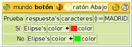 Nota: Tal y como se ha construido el guión, para que se ejecute la acción que colorea de verde la Elipse, la respuesta debe estar escrita correctamente y toda ella en mayúsculas.