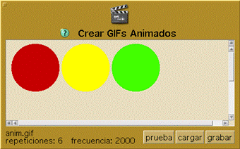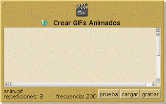 Los botones prueba, cargar y grabar se utilizan, respectivamente, para probar, recuperar y guardar gifs animados.
